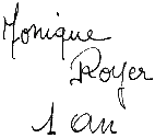 Le quatorze mars mil neuf cent trente neuf, trois heures, est née à La Chapelle Monique Germaine Renée, du sexe féminin, de Remi Robert Royer, né à Courcité (Mayenne) le trente juillet mil neuf cent dix, employé de chemin de fer et de Ginette Renée Germaine Bidault, née à Blois (Loir et Cher) le dix huit décembre mil neuf cent dix huit, sans profession, son épouse, domiciliés à Urou et Crennes (Orne). Dressé le jour suivant, vingt heures sur la déclaration du père qui, lecture faite à signé avec nous Gustave Monnier, Maire de Gandelain. Deux mots rayés nuls.